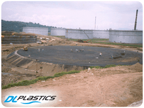 Olietankpark in Estland. De Lange monteurs hebben folie onder deze tank geplaatst.